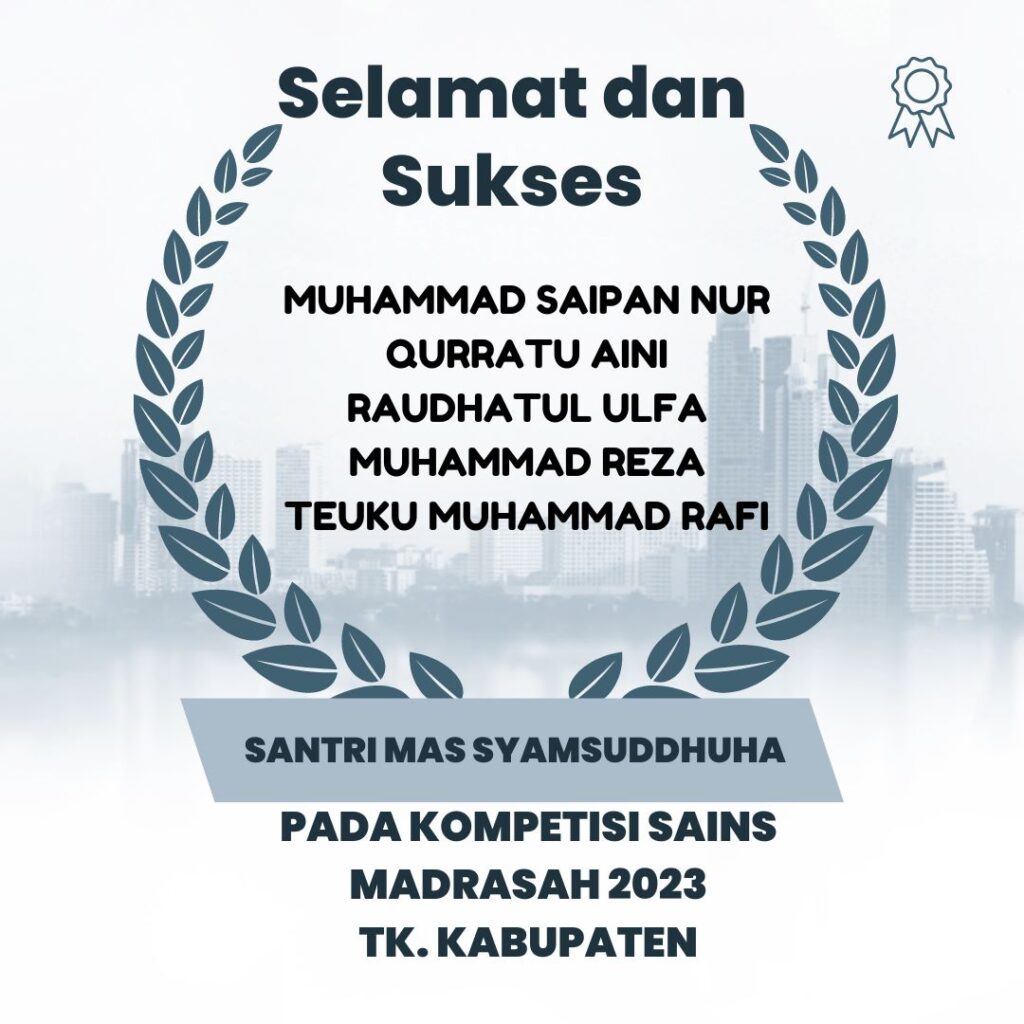 Pada pengumuman tersebut, tercatat lima siswa-siswi MAS Syamsuddhuha berhasil menjadi juara atau lolos ke KSM tingkat provinsi. Mereka adalah Muhammad Saipan Nur sebagai Juara 2 pada Mapel Geografi Terintegrasi. Qurratu Aini sebagai Juara 4 pada Mapel Matematika Terintegrasi. Raudhatul Ulfa sebagai Juara 4 pada Mapel Fisika Terintegrasi. Muhammad Reza sebagai Juara 5 pada Mapel Geografi Terintegrasi. Dan Teuku Muhammad Rafi sebagai Juara 5 pada Mapel Ekonomi Terintegrasi.